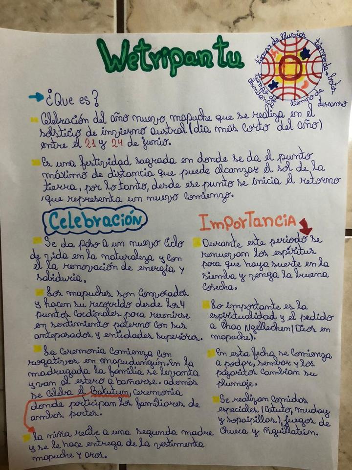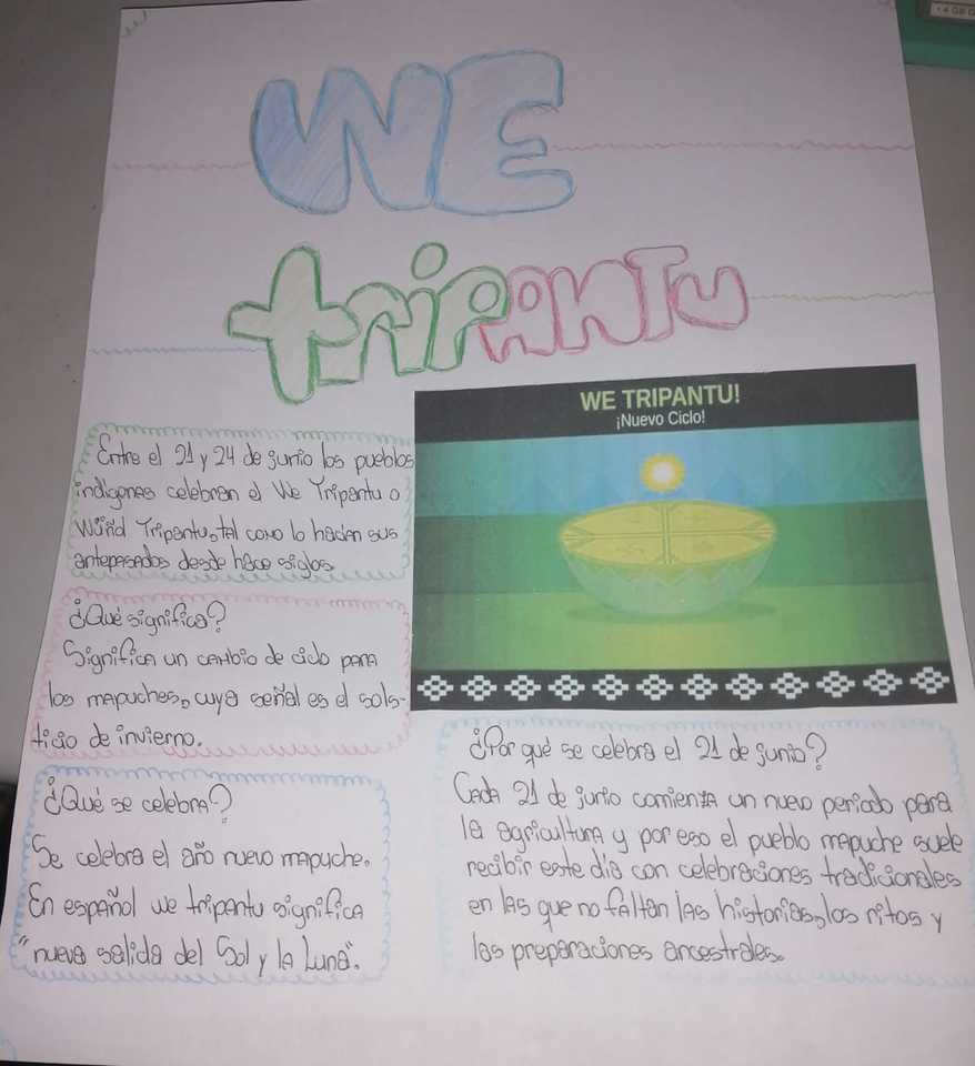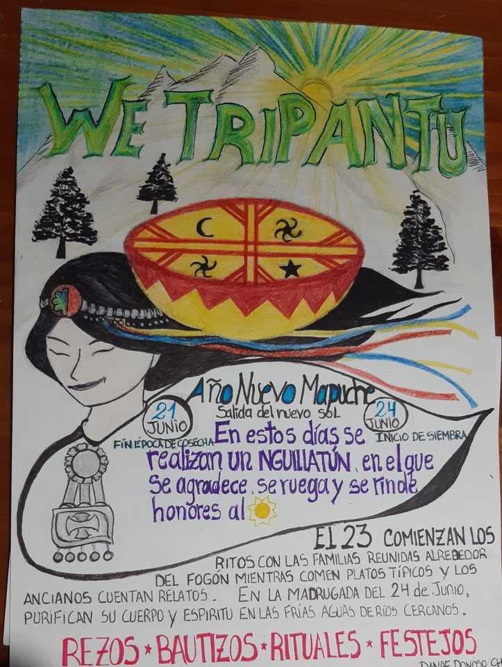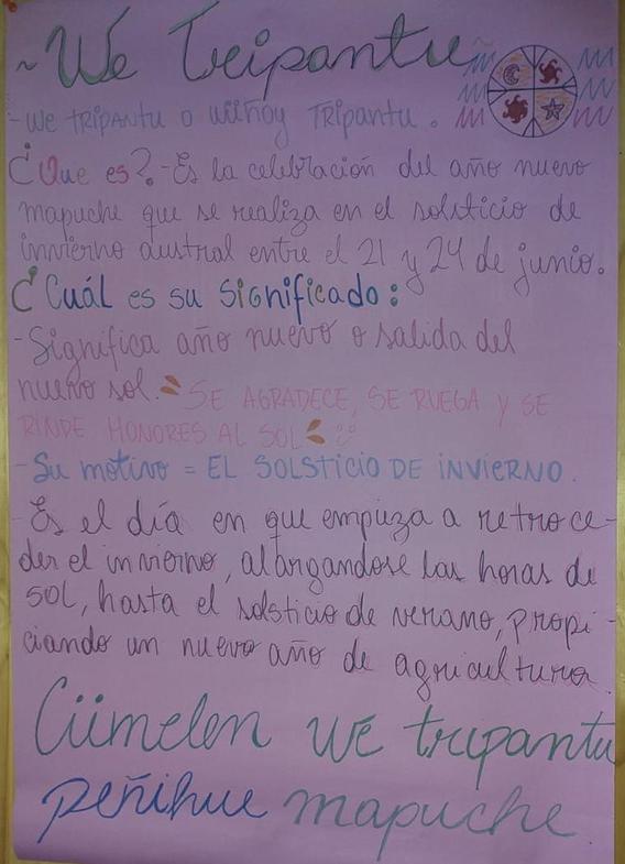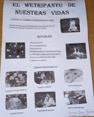 Hoy, 24 de Junio, Noche de San Juan y Wetripantru, fechas con mucho arraigo en nuestras comunidades, quiero dejar con Uds. El saludo y el cariño de nuestros y nuestras estudiantes con sus diferentes formas de expresión. La Profesora Loreto y el Profesor Elías, al igual que todos, confinados en sus casas nos comparten los trabajos de sus estudiantes en la asignatura de Lenguaje y Comunicación.