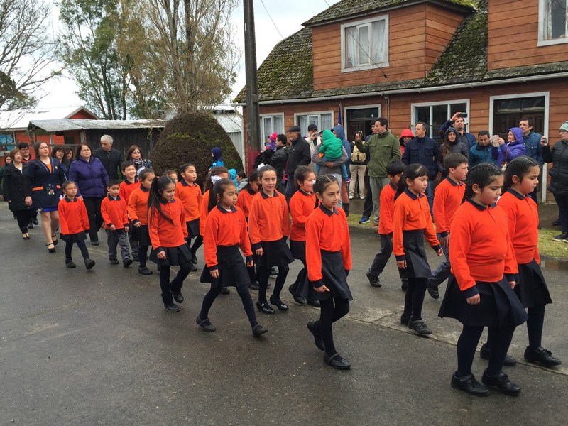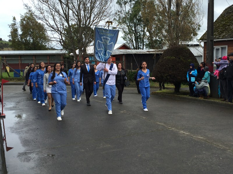Dieron inicio las Fuerzas Armadas y de Orden, Bomberos, luego hizo su presentación la Banda de Gerra y Orfeón Instrumenta de nuestro Liceo, con la que desfilaron nuestros Estudiantes, Profesores, Asistentes de la educación, etc. Luego fue el turno de la banda escolar de la ciudad de Castro, con las que desfilaron los Estudiantes, Profesores y Asistentes de Educación de las Escuelas Rurales de la Comuna, los diferentes clubes de Adultos Mayores, el Club de Huasos y el club de motociclismo, dando termino al desfile.
