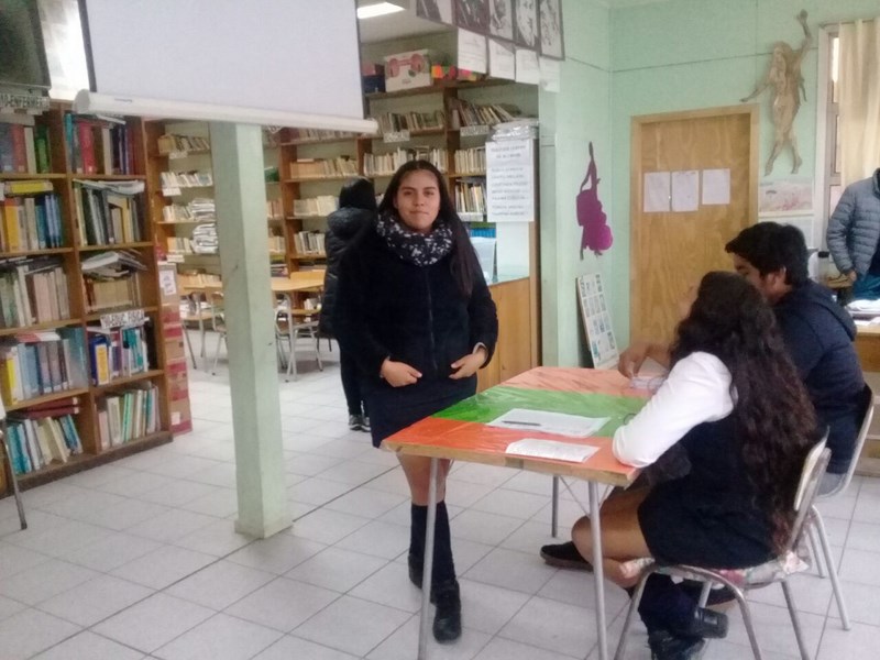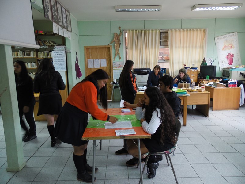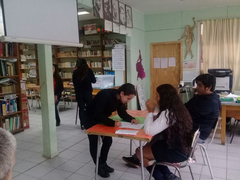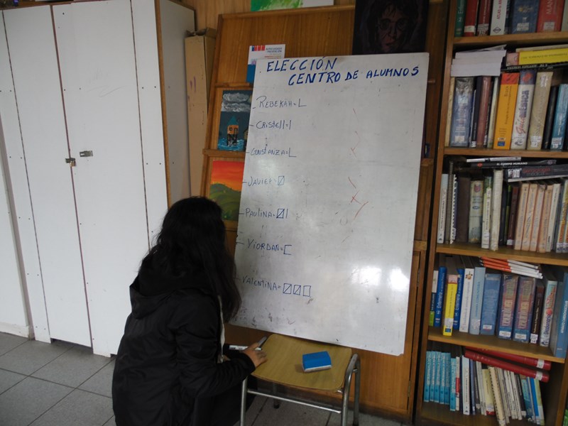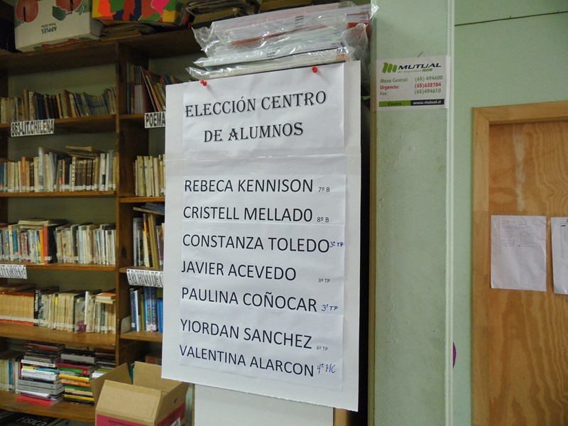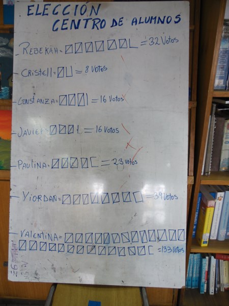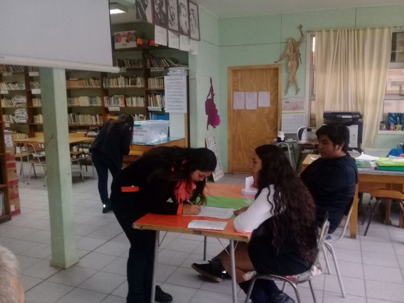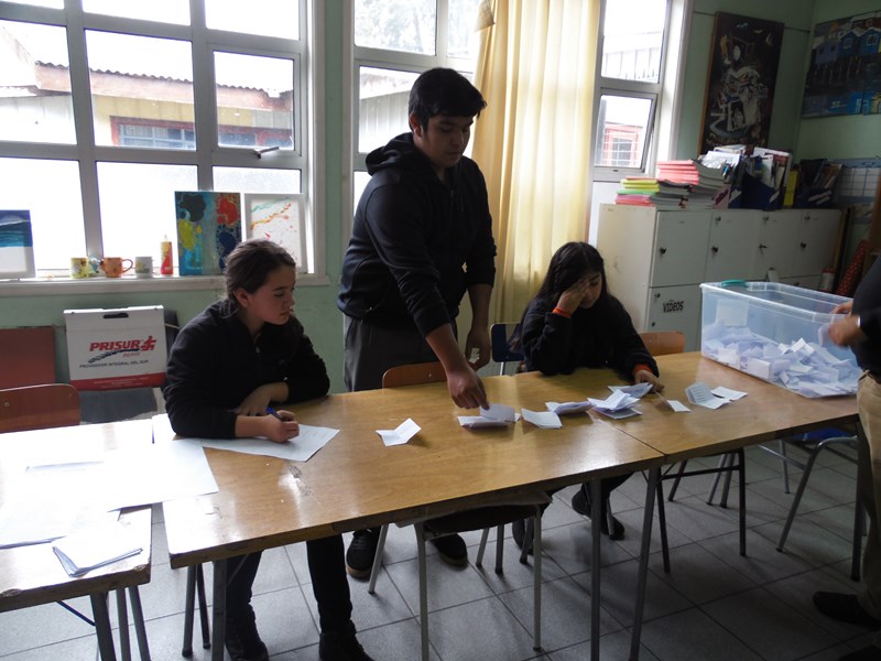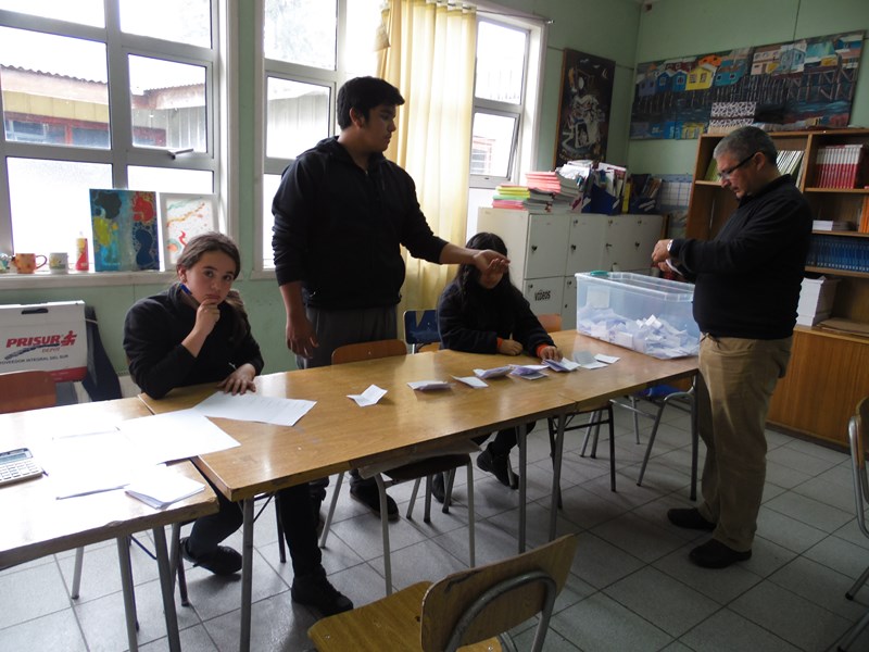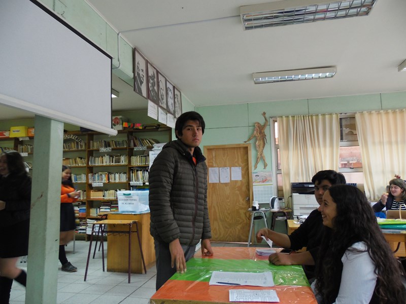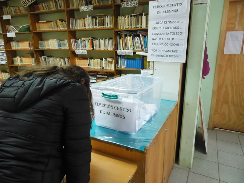 Respecto de la votación, ésta se realizó entre las 10:00 Hrs. y las 12:00 hrs. en dependencias de la biblioteca escolar, a cargo de la Junta Electoral conformada por los alumnos: Elizabeth Sophia Kennison Quezada (4º Medio TP), Luis Barría Mansilla (4º Medio HC), Natasha Michell Sepúlveda Andrade (3º Medio TP), Florencia Antonia Mansilla Jalife (8º Básico).